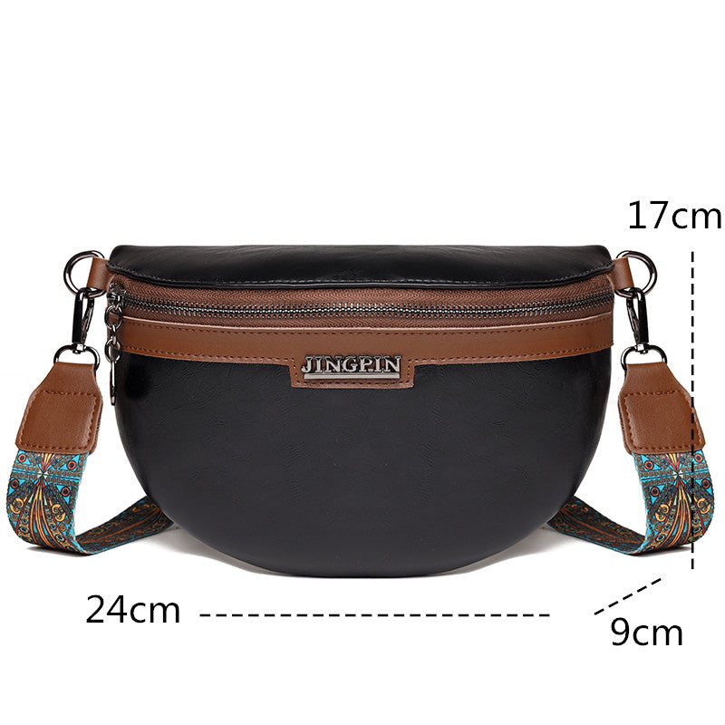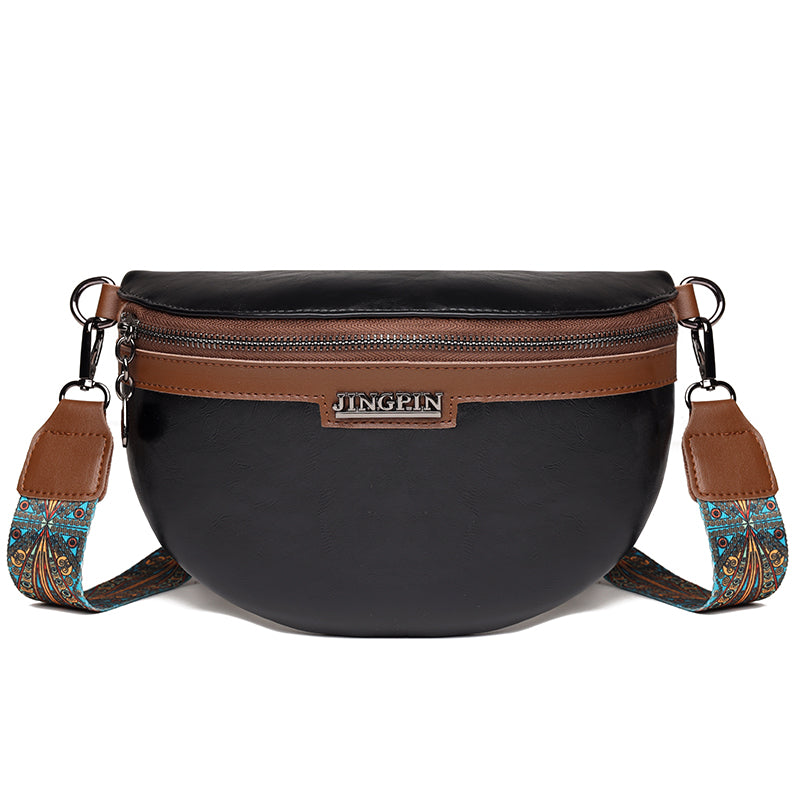 Lo que hace que esta riñonera se destaque es su bandolera con motivos étnicos. Estampados originales y a la moda añaden autenticidad a tu estilo, creando un llamativo contraste con la piel lisa. La bandolera no sólo ofrece un elemento visual único, sino también una comodidad incomparable que te permitirá llevar este bolso con facilidad y estilo.