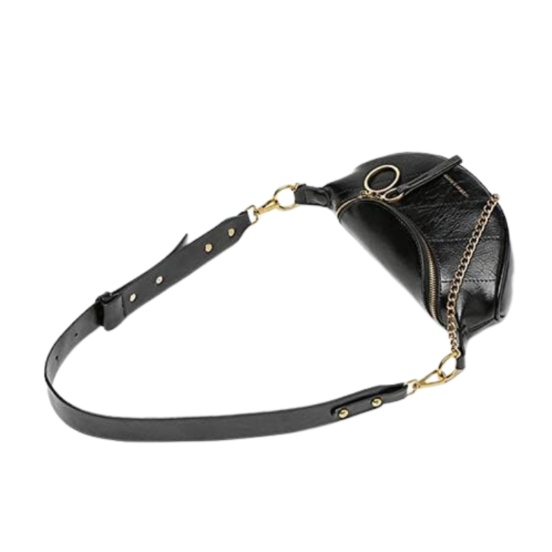 Tanto para una velada elegante como para un día en la ciudad, esta riñonera negra te permitirá brillar con un look chic e indispensable. Su elegante diseño negro combina con cualquier atuendo, añadiendo un toque de sofisticación a tu estilo.